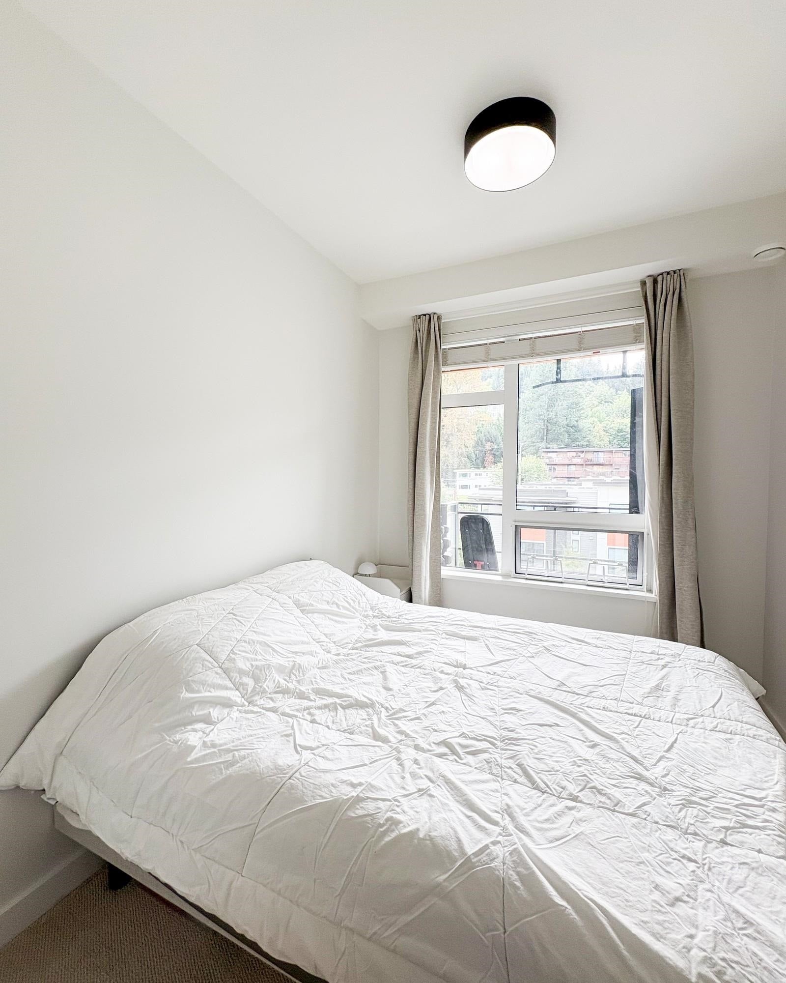 Welcome to George by Marcon in the heart of Port Moody! This bright south-facing 1 bed + large den, 685 SF (excluding balcony) home boasts 9' ceilings, large windows, and balcony. The open layout features a modern kitchen with stainless steel appliances, gas range, quartz counters, and sleek cabinetry. The versatile den works as a home office, guest room, or nursery. Amenities include a social lounge, courtyard, playground, work/hobby room, bike room, and car/pet wash stations. Steps to Moody Centre SkyTrain, West Coast Express, Rocky Point Park, Brewers Row, shops, schools, and trails. Includes 1 parking and 1 spacious storage. Pets and rental friendly! Open House this Sat, Nov 8 2-4pm and Sun, Nov 9 12-2pm.